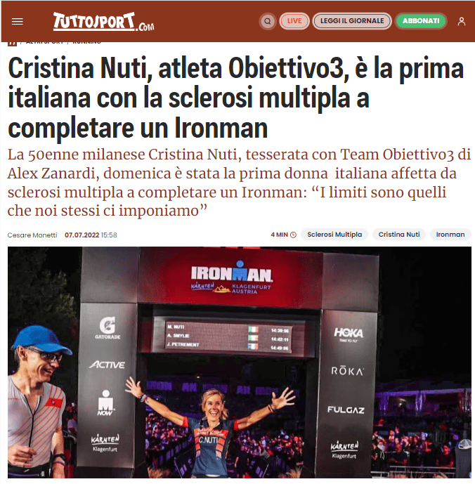 O anche come, Cristina Nuti, la prima donna al mondo, affetta dalla sclerosi Multipla ad aver completato un Ironman...