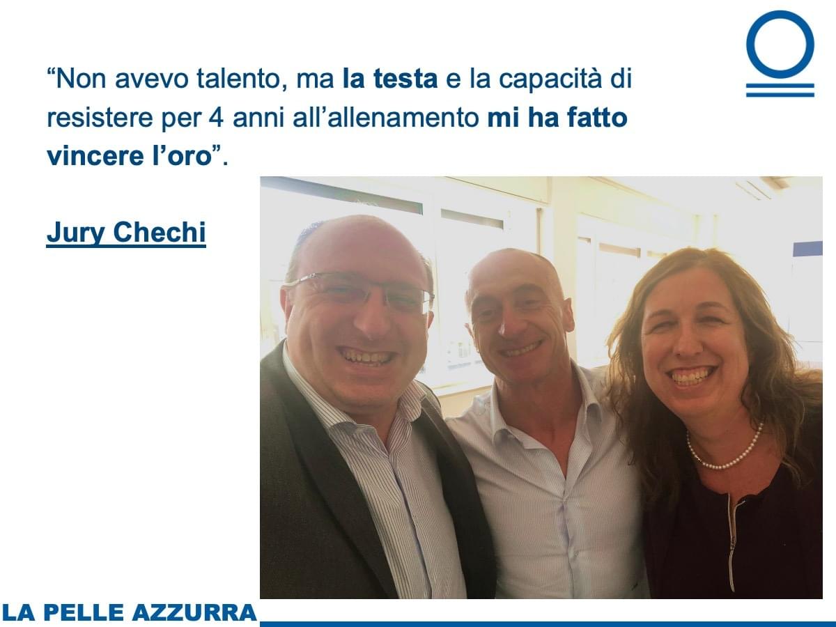 "Il percorso con Sara e Alessandro mi ha reso più consapevole e forte mentalmente e mi ha fatto capire che non esistono emozioni negative, ma soltanto emozioni da trasformare in carburante esplosivo per il raggiungimento dei propri obiettivi. Consiglio a chi come me vuole raggiungere traguardi ambiziosi di intraprendere un percorso con la Pelle Azzurra"