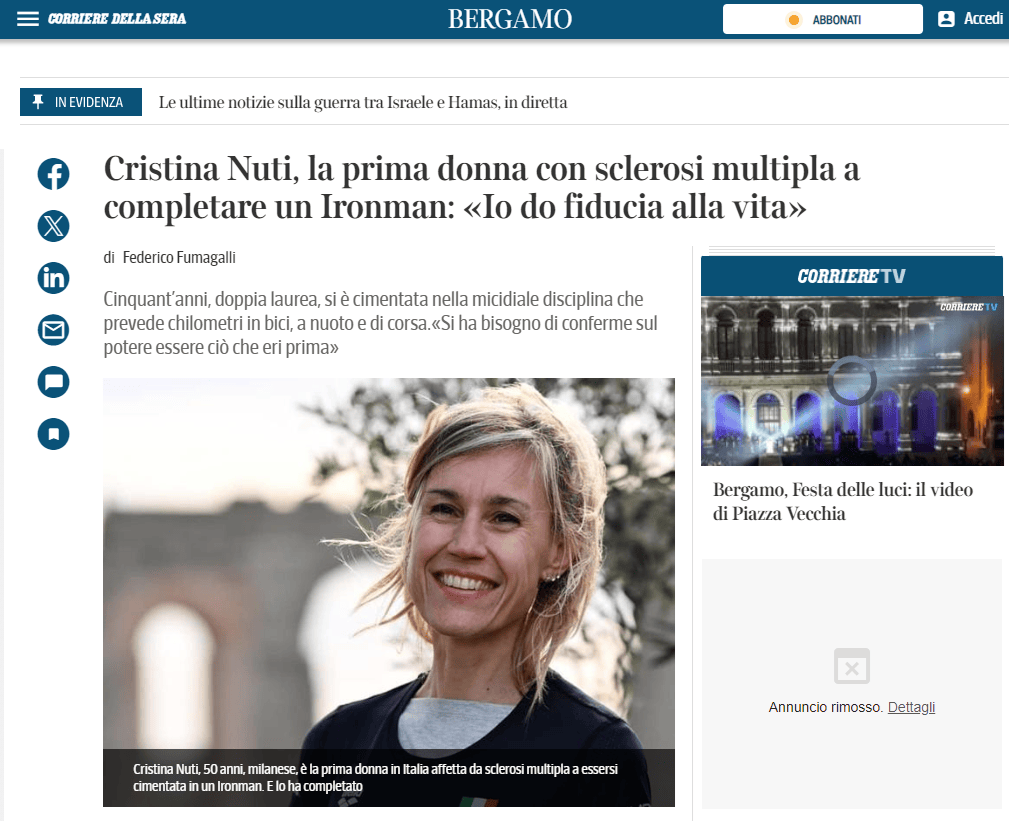 "Non avrei immaginato di raggiungere certi risultati" - Cristina Nuti, prima donna al mondo con la sclerosi multipla ad aver completato un Ironman