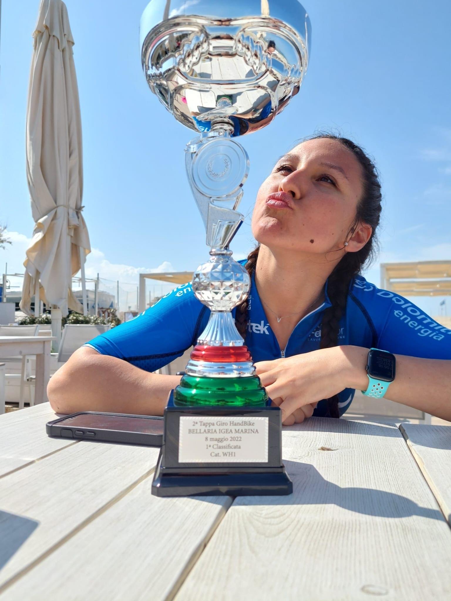 "Prima della gara mi sentivo bloccata. Il mio corpo era lì, ma la mia mente era altrove e non riuscivo a dare il massimo. Con Sara e Alessandro sono riuscita ad uscire da certe situazioni di panico che mi bloccavano nel pre gara e anche durante la gara!" - Veronica Frosi, Handbike